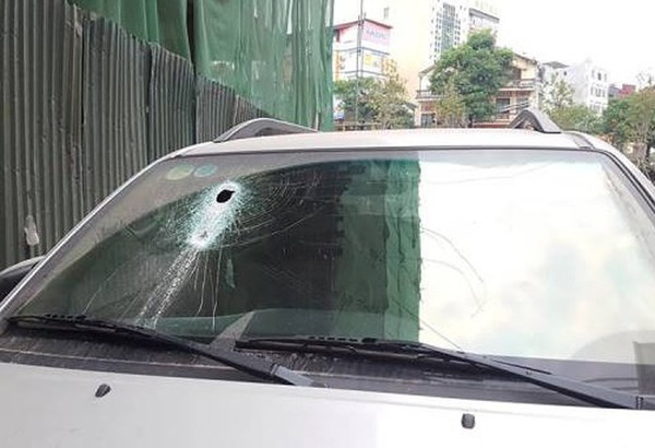 Thanh sắt rơi đâm thủng kính trước của chiếc xe ôtô