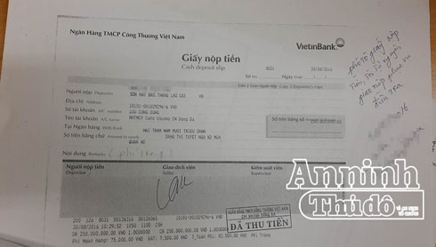 Giấy xác nhận chuyển tiền của nạn nhân.