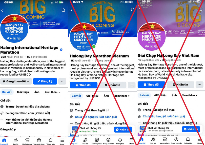 Điển hình như Giải chạy Marathon Quốc tế Di sản Hạ Long 2025, dự kiến diễn ra vào ngày 23/11/2025, đã bị một số Fanpage giả mạo. Các trang này đăng tải thông tin tuyển người tham gia và kêu gọi đóng tiền BIB (số báo danh) để đăng ký. Tuy nhiên, theo thông tin từ Ban Tổ chức, giải chạy chỉ bán BIB chính thức cho vận động viên thông qua website www.halongmarathon.com.