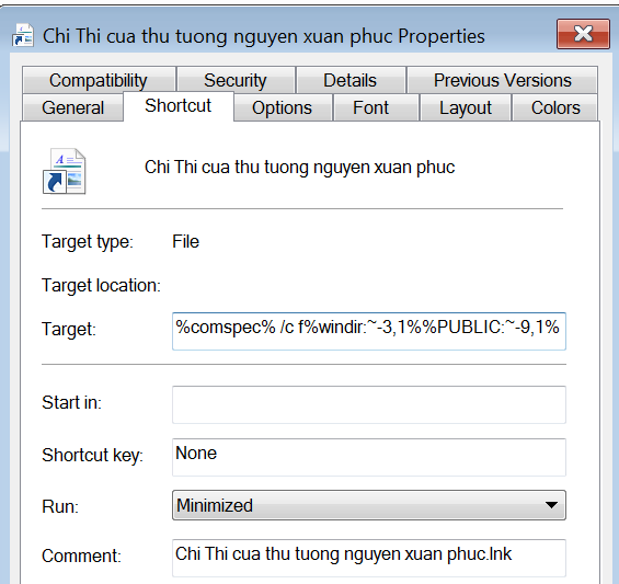 Tập tin có dạng shortcut với phần mở rộng là “.lnk” được ngụy trang dưới biểu tượng tập tin văn bản nhằm đánh lừa người dùng. Nếu người dùng tải tập tin đính kèm về và mở trên máy tính (mã độc này chỉ hoạt động trên hệ điều hành Windows), mã độc sẽ được kích hoạt, cài đặt vào máy tính, kết nối đến máy chủ điều khiển để tải các đoạn mã độc khác và nhận lệnh điều khiển của tin tặc, đồng thời, mở tập tin văn bản để đánh lừa người dùng. Khi đó, tin tặc có thể thực hiện nhiều lệnh thực thi khác nhau, như đánh cắp dữ liệu, thông tin máy tính, sử dụng để tiếp tục phát tán sang máy tính khác...
