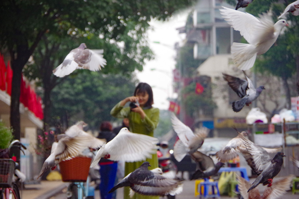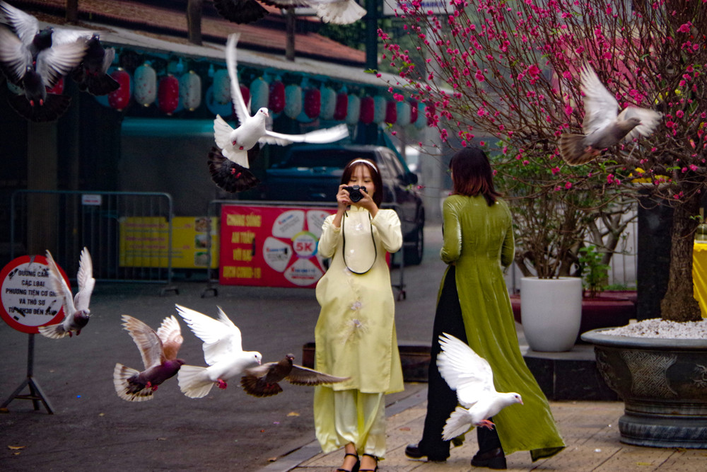 ANTD.VN - Những cô gái trong tà áo dài truyền thống mang xuân xuống phố và đàn bồ câu tung cánh là những hình ảnh tuyệt đẹp trong sớm mùng 1 Tết Quý Mão ở Hà Nội...