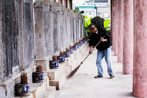Sau khi ông Toàn ngâm xong, bắt đầu câu chuyện về công việc quản trang của ông trong hơn 30 năm qua. Ông cười, một nụ cười hiền từ, nhân hậu khiến người đối diện cảm thấy gần gũi đến lạ.