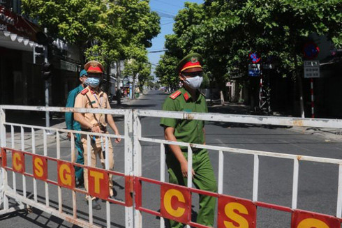 Các lực lượng chức năng tuần tra trên đường phố Đà Nẵng sau khi quy định giãn cách xã hội được ban hành