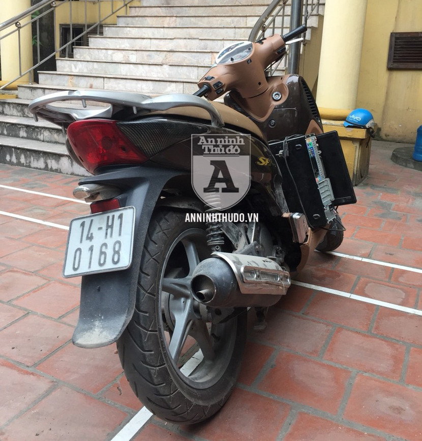 Chiếc xe máy SH đeo BKS nghi là giả mà 2 đối tượng đang sử dụng. Chiếc xe này là tang vật trong một vụ trộm xảy ra cách đây 7 năm