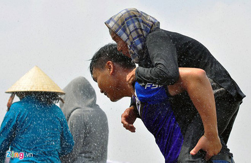 Trước sự tác động của thiên tai, người dân được di chuyển bằng mọi cách đến nơi an toàn. Trong đó, các cụ già, trẻ em được thanh niên dẫn dắt, cõng đi lánh nạn.