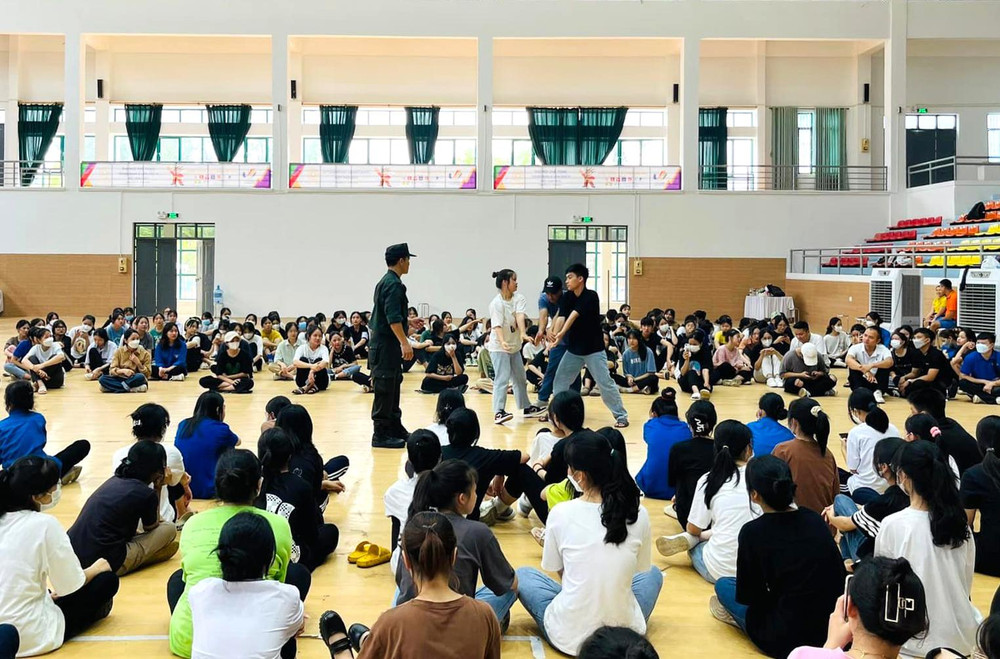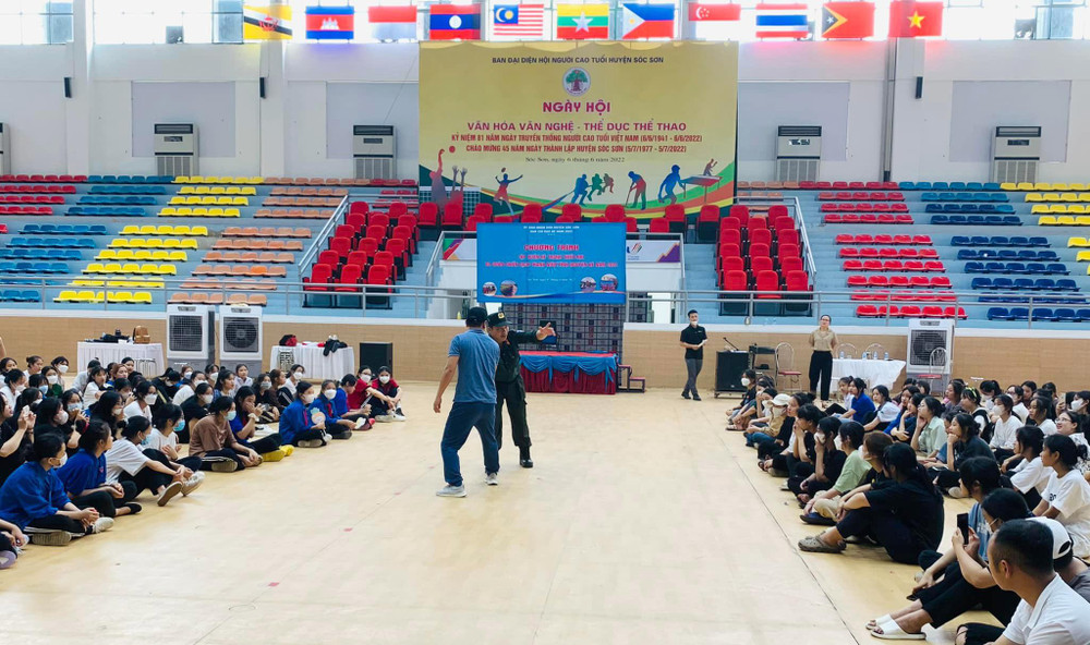 ANTD.VN - Hơn 200 thanh thiếu niên của 26 xã, thị trấn trên địa bàn huyện Sóc Sơn (Hà Nội) được các chiến sĩ thuộc Trung đoàn CSCĐ Thủ đô, Bộ Tư lệnh Cảnh sát cơ động tập huấn, thực hiện các kỹ năng về phòng chống các hành vi xâm phạm trẻ em và bạo lực học đường.