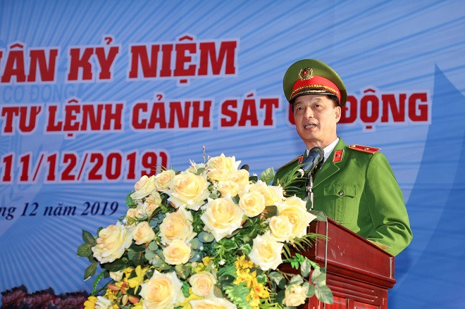 Thiếu tướng Nguyễn Duy Ngọc, Thứ trưởng Bộ Công an phát biểu chúc mừng lực lượng Cảnh sát cơ động