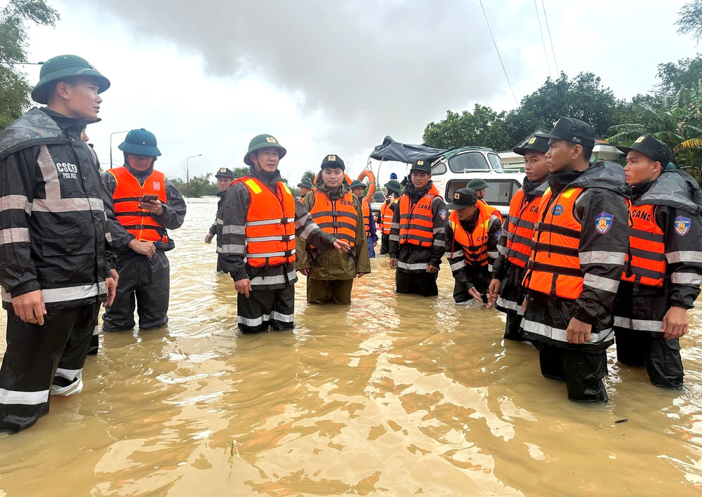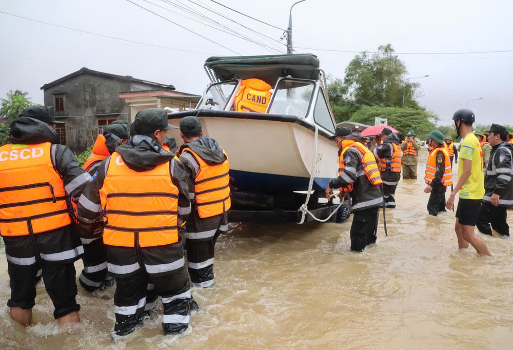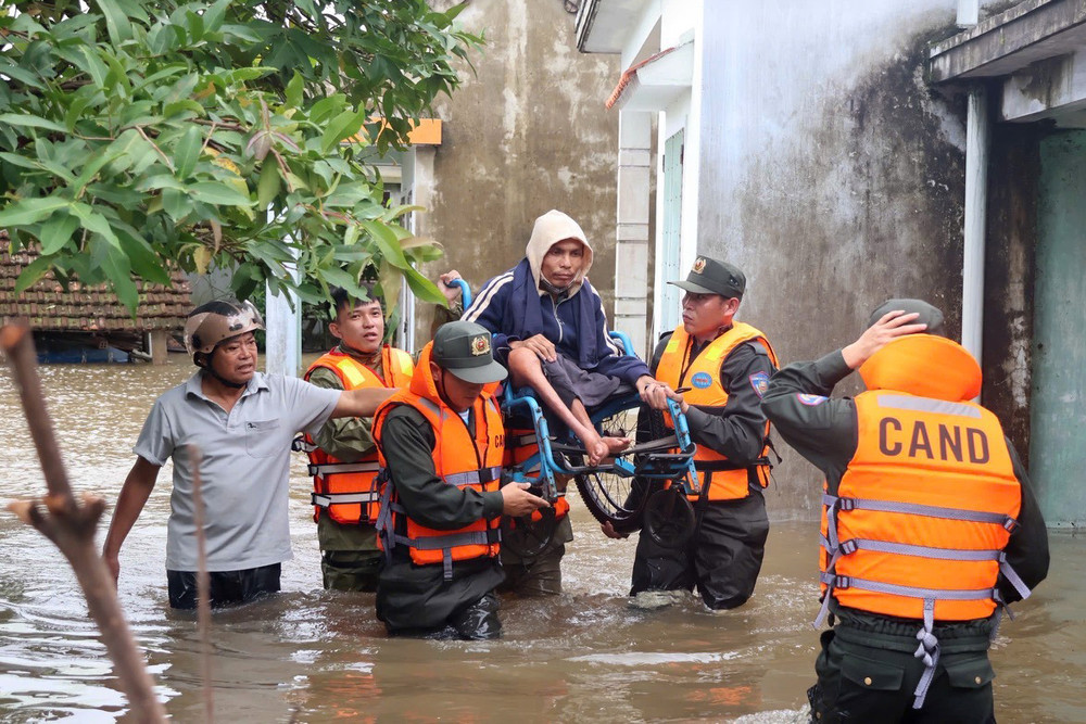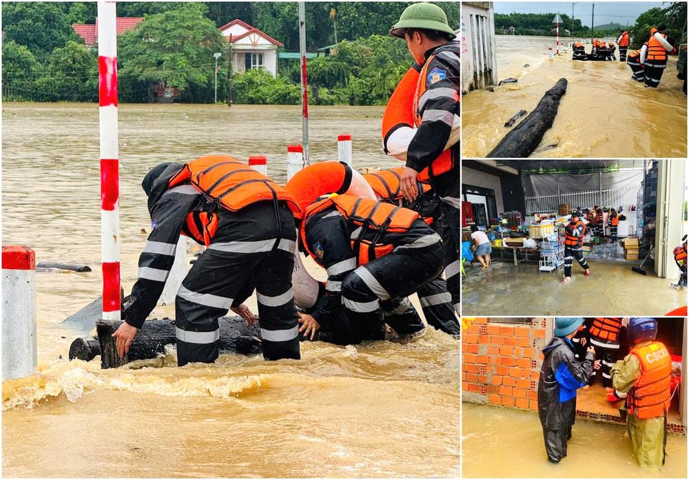 ANTD.VN - Trước tình hình mưa, lũ lụt diễn biến phức tạp tại các tỉnh miền Trung, lực lượng Cảnh sát cơ động (Bộ Công an) đã liên tiếp tăng cường cán bộ, chiến sĩ ra quân thực hiện công tác cứu nạn, cứu hộ các gia đình đang bị ngập lụt cô lập, vận chuyển cấp phát nhu yếu phẩm đến từng nhà, với sự quyết tâm không để ai bị đói, thiếu nước uống...