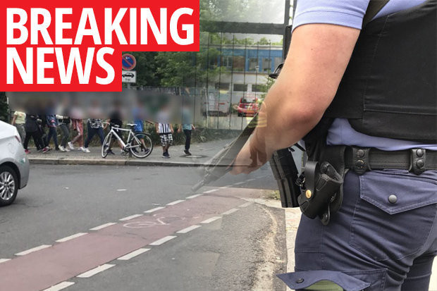 Lực lượng chức năng đã lập tức được triển khai tới hiện trường, phong tỏa các tuyến phố Gotenburg và Prinzenallee, sơ tán toàn bộ học sinh và giáo viên trong trường để tìm kiếm các đối tượng tình nghi.