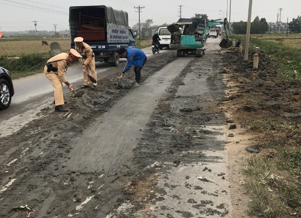 Tại hiện trường, Cảnh sát giao thông (CSGT) phát hiện cả một đoạn đường dài ngổn ngang bùn đất. Theo nhận định của các chiến sỹ CSGT và thông tin người dân cung cấp, rất có thể số bùn đất này đã bị rơi ra từ xe tải chở vật liệu xây dựng, phế thải đi trên đường. Từng tảng bùn, đất lớn chiếm phần lớn diện tích mặt đường, tạo thành những cái “bẫy” người và phương tiện tham gia giao thông. Khi đi qua khu vực này, người tham gia giao thông đã phải đi nép sát vào phần đường ít ỏi còn lại, đồng thời nơm nớp lo sợ sẽ bị ngã, tai nạn bất cứ lúc nào.