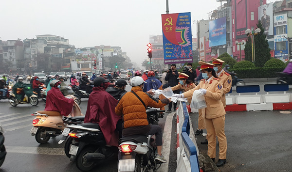 Những người tham gia giao thông được nhận khẩu trang miễn phí từ các cán bộ, chiến sĩ CSGT đều rất vui mừng. Chị Đỗ Thị Hoa, một người buôn bán rau khi dừng xe theo tín hiệu đèn giao thông được nhận khẩu trang miễn phí đã vui mừng bày tỏ, cảm ơn các cán bộ, chiến sỹ CSGT không quản mưa rét để phát khẩu trang tới tận tay người tham gia giao thông.