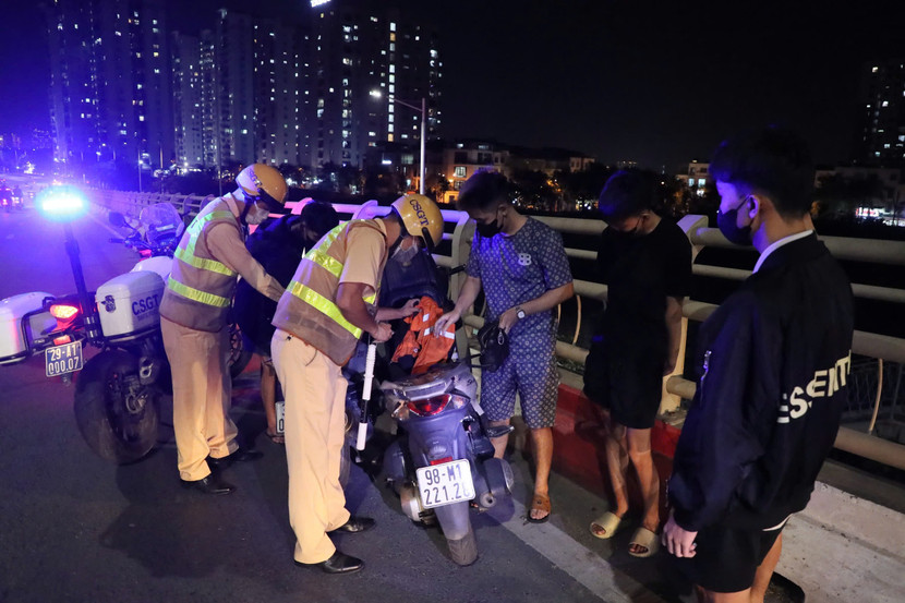 | Trong đêm, cán bộ chiến sĩ Đội Cảnh sát giao thông số 6 đã bắt giữ nhiều trường hợp "đầu trần" điều khiển xe tốc độ cao, gây rối trật tự công cộng |