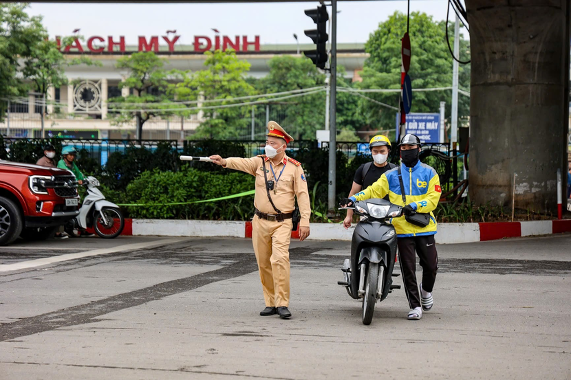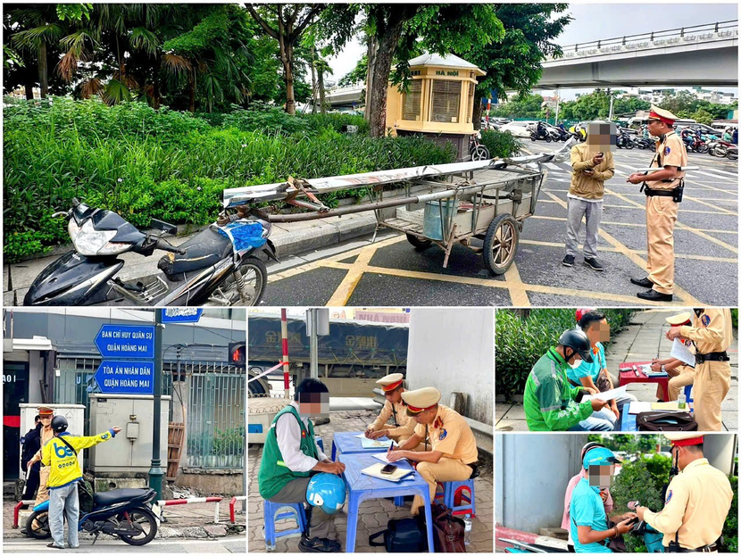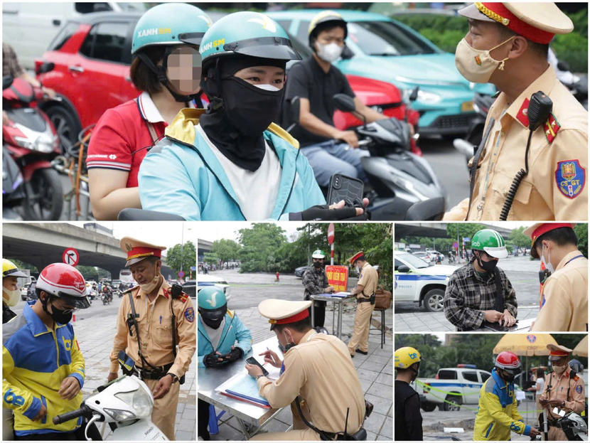 Từ 7h đến 8h15 cùng ngày, Đội CSGT số 6 xử lý trực tiếp 21 trường hợp vi phạm an toàn giao thông tại tuyến Phạm Hùng – Tôn Thất Thuyết (quận Cầu Giấy), trong đó có 14 “xe ôm” công nghệ. Trên tuyến Khuất Duy Tiến (quận Thanh Xuân), Đội CSGT số 7 đã lập biên bản 20 trường hợp, trong đó có 12 tài xế xe ôm công nghệ. Các lỗi vi phạm chủ yếu: điều khiển xe đi lên vỉa hè, không chấp hành đèn tín hiệu giao thông, không đội mũ bảo hiểm, chở hàng hóa quá khổ, tiềm ẩn nguy cơ tai nạn cao.