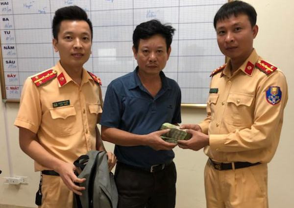 Sau khi hết giờ làm việc buổi sáng, Đại úy Lương Anh Hiếu và Đại úy Hà Trọng Hoan, Đội phó Đội Đăng ký quản lý xe đã phát hiện chiếc ba lô nằm ở góc dãy ghế ngồi. Kiểm tra chiếc ba lô, các chiến sỹ CSGT thấy bên trong có hơn 60 triệu đồng cùng nhiều giấy tờ quan trọng mang tên anh Thịnh. Đại úy Hà Trọng Hoan đã chỉ đạo Đại úy Lương Anh Hiếu điện thoại mời anh Thịnh đến nhận lại tài sản.