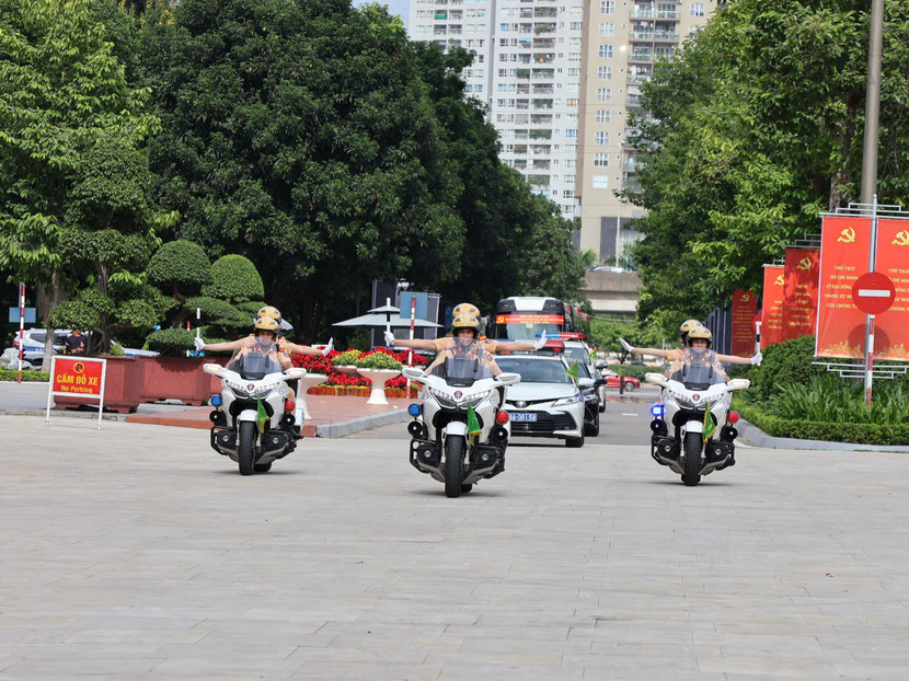 | Cảnh sát giao thông dẫn đoàn vào vị trí, sẵn sàng làm nhiệm vụ |