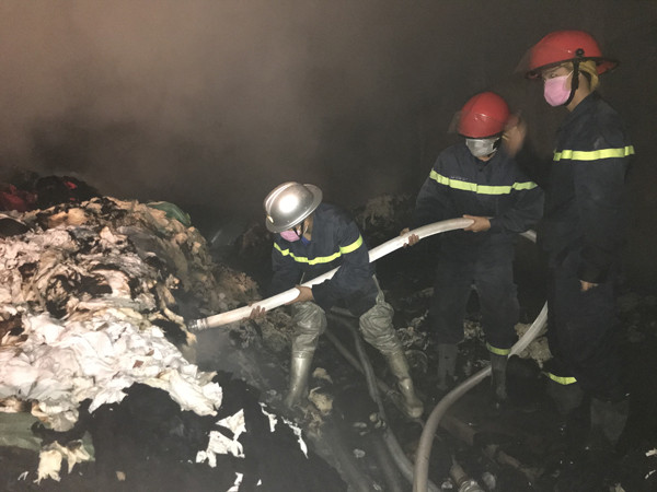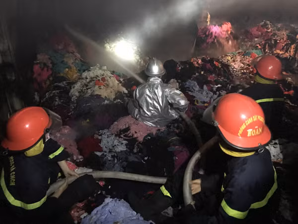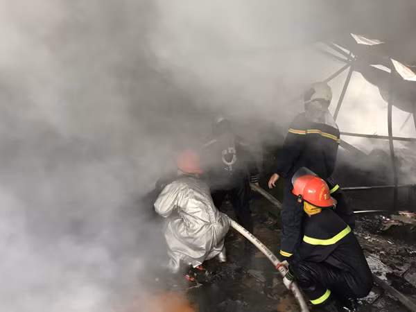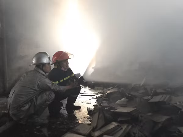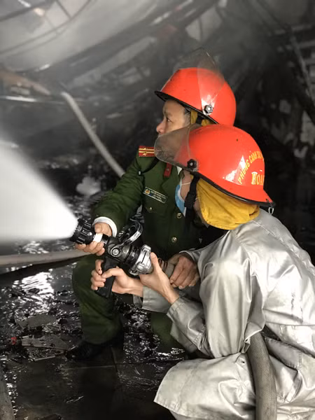 Lực lượng chữa cháy tiếp cận dập lửa nhưng khi phun nước vào đã gặp phải khói bao trùm gây khó khăn tiếp cận, xử lý