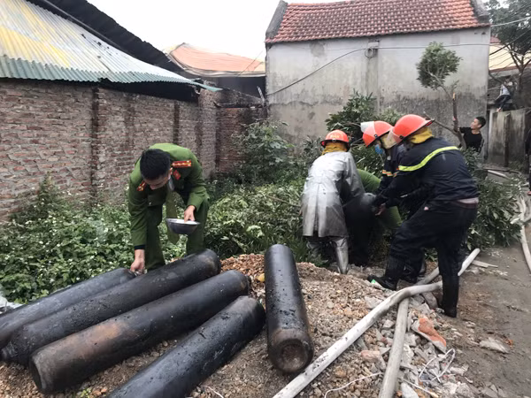 Các chiến sỹ đa không ngại nguy hiểm cứu nạn các bình khí gas ra nơi an toàn tránh phát nổ