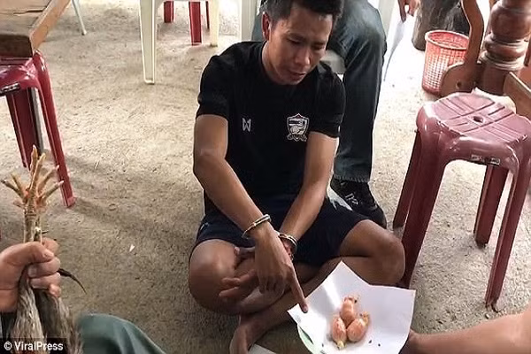 Seuksongkram thừa nhận đã mua 2 con gà từ một người phụ nữ ở làng lân cận. Hiện đối tượng này đang bị tạm giam với cáo buộc buôn bán ma túy và ngược đãi động vật.