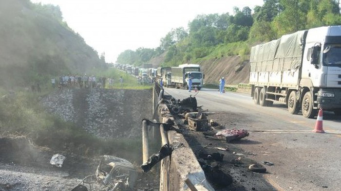 Xe ôtô tải xitec chuyên chở nhiên liệu - xăng dầu, BKS 89C-124.94, lưu thông hướng Nội Bài - Lào Cai, khi đến địa điểm cầu Ngòi Thủ (Km136+108) bị mất lái đã đâm va với xe ôtô 5 chỗ, hiệu Mazda CX5, BKS 30F-190.74 đang lưu thông theo hướng Lào Cai - Nội Bài. Sau khi đâm va với xe ôtô Mazda CX5, xe ôtô tải xitec tiếp tục đâm gẫy lan can bên trái cầu Ngòi Thủ và rơi xuống khu vực gần cầu rồi bốc cháy.