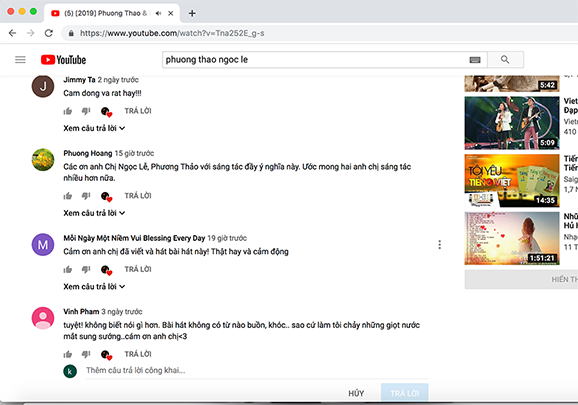 Nhiều bình luận của khán giả bày tỏ tình cảm yêu mến với sáng tác mới của nhạc sĩ Ngọc Lễ