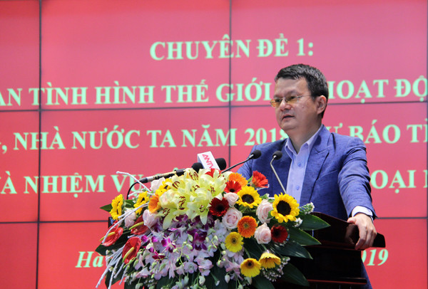 Tại buổi báo cáo thời sự, các đại biểu đã nghe TS Trần Việt Thái, Phó Viện trưởng Viện nghiên cứu chiến lược ngoại giao, Bộ Ngoại giao trình bày về tình hình thời sự một số nước trong khu vực và thế giới; hoạt động đối ngoại của Đảng và Nhà nước ta trong năm 2018 cũng như dự báo tình hình thế giới và nhiệm vụ công tác đối ngoại năm 2019; bối cảnh lịch sử, cuộc chiến đấu kiên cường, anh dũng, bất khuất của quân và dân ta bảo vệ biên giới phía Bắc của Tổ quốc; những thông tin bên lề Hội nghị thượng đỉnh Mỹ - Triều Tiên vừa diễn ra tại Hà Nội...