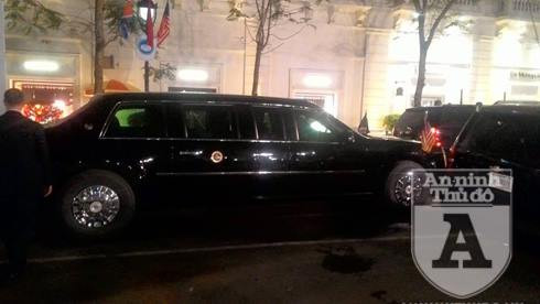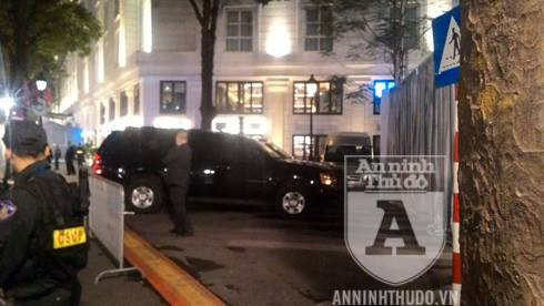 Ngắm "Quái thú" bọc thép của Tổng thống Mỹ Donald Trump đậu trong nhà bạt bên cạnh khách sạn Metropole. Clip: Trung Hiếu