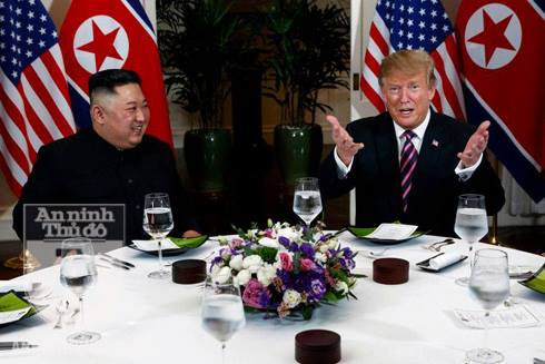 Không khí vui vẻ trong bữa ăn tối của Tổng thống Donald Trump và Chủ tịch Kim Jong-un tại khách sạn Sofitel Legend Metropole. Ảnh: Reuters