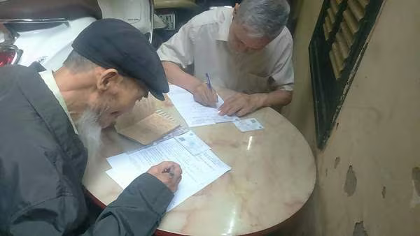 Một số cán bộ hưu trí kê khai lại thông tin để làm thủ tục cấp, đổi thẻ BHYT