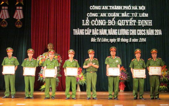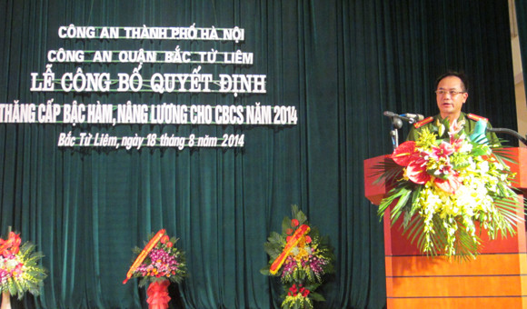 Đại tá Đoàn Ngọc Hùng, Phó giám đốc CATP trao quyết định nâng lương cho