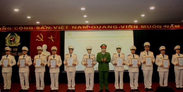 Đại tá Nguyễn Đình Chiến - Trưởng CAQ Hoàng Mai trao quyết định thành lập, ra mắt một số đội nghiệp vụ theo mô hình tổ chức mới