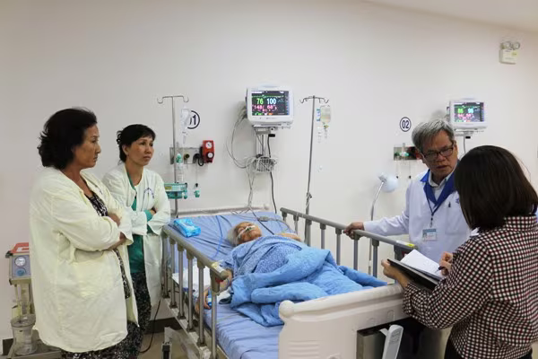Bệnh nhân Nguyễn Thị Chiên đang được điều trị tích cực tại phòng hậu phẫu