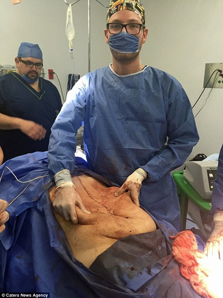Trong cuộc phẫu thuật kéo dài nhiều giờ đồng hồ, các bác sĩ đã quyết định mở toàn bộ vùng bụng và ngực, cắt bỏ khối u nguyên vẹn không bị vỡ dịch, nhằm ngăn ngừa nguy cơ nhiễm khuẩn và lây lan khối u.