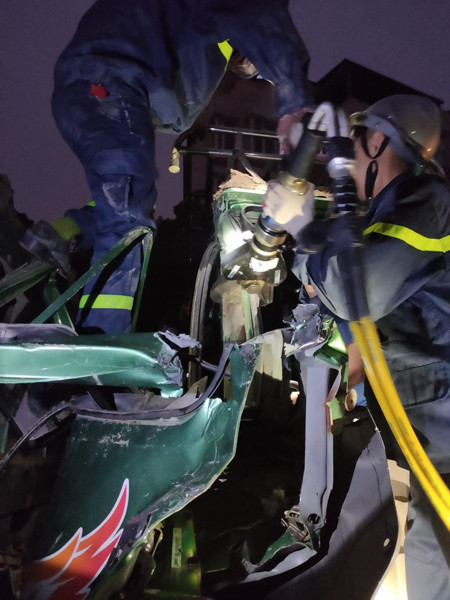 Lực lượng cứu nạn banh cabin ô tô cứu lái xe mắc kẹt sau cú va chạm giao thông
