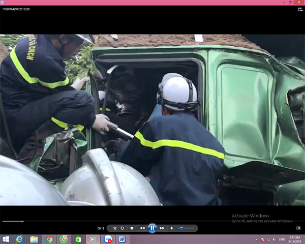 Trong điều kiện các xe bị tai nạn đều là xe tải, có tải trọng lớn va nhau với lực rất lớn, lực lượng tham gia cứu nạn đã phải cắt vô lăng và các trục của cabin xe, đẩy phần đầu của xe đã bẹp rúm bằng các loại kích chống thủy lực trong điều kiện rất khó khăn.