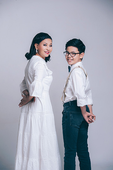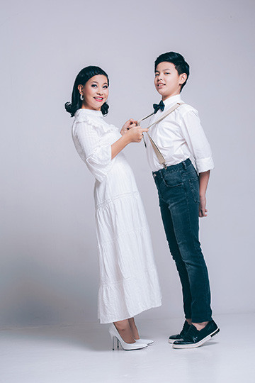 Hai mẹ con Cát Phượng tạo dáng vui vẻ bên nhau