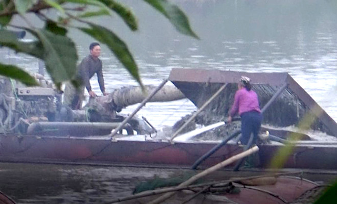 "Cát tặc" ngang nhiên hoạt động trên sông Chu, đoạn chảy qua một số xã thuộc huyện Thọ Xuân