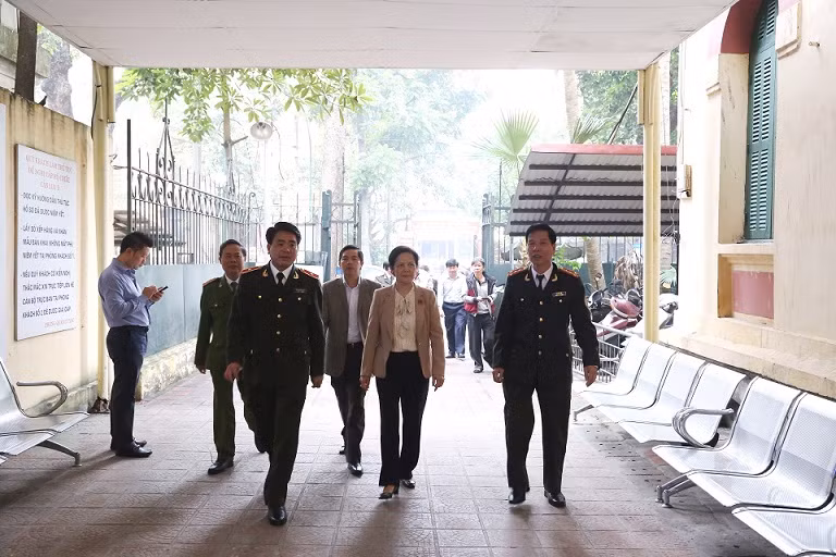 Đ/c Ngô Thị Doãn Thanh- Phó Bí thư Thành ủy- Chủ tịch HĐND thành phố dẫn đầu đoàn công tác kiểm tra việc đăng ký hộ chiếu qua mạng internet tại Phòng Xuất nhập cảnh, CATP Hà Nội