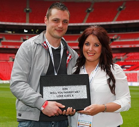 Hôm qua là Leap day (ngày nhuận - 29/2), ngày mà các cô gái cầu hôn tình lang của mình. Một cô gái có tên là Kate Nash - nữ nhân viên văn phòng sinh ra và lớn lên ở Stoke, Anh đã rủ bạn trai đến sân Wembley tham quan và xem bóng đá.