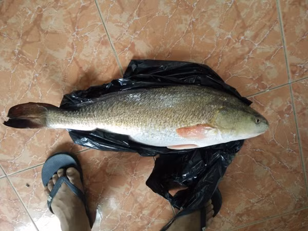 Chú cá lạ giống cá Sủ vàng được ông Dũng câu sáng 29-6