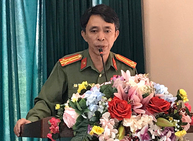 Thượng tá Võ Xuân Đương - Phó Trưởng CAQ Ba Đình phát biểu tại hội nghị "Công an lắng nghe ý kiến nhân dân" năm 2019 do CAP Phúc Xá tổ chức
