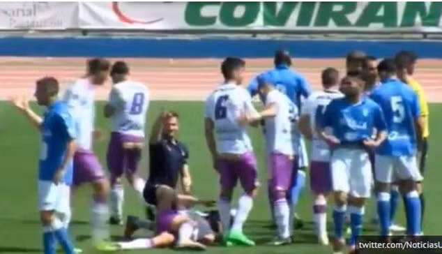 Năm nay 23 tuổi, Diego Bardanca chơi cho Real Jaen trong chuyến du đấu tới Melilla, nơi anh phải nhận một chiếc giày vào giữa mặt. Tiền vệ này lăn lộn dưới sân tỏ ra rất đau đớn, nhưng trọng tài cho phép trận đấu tiếp tục cho đến lúc đồng đội của Bardanca thuyết phục vị “vua áo vàng” thổi còi tạm dừng.