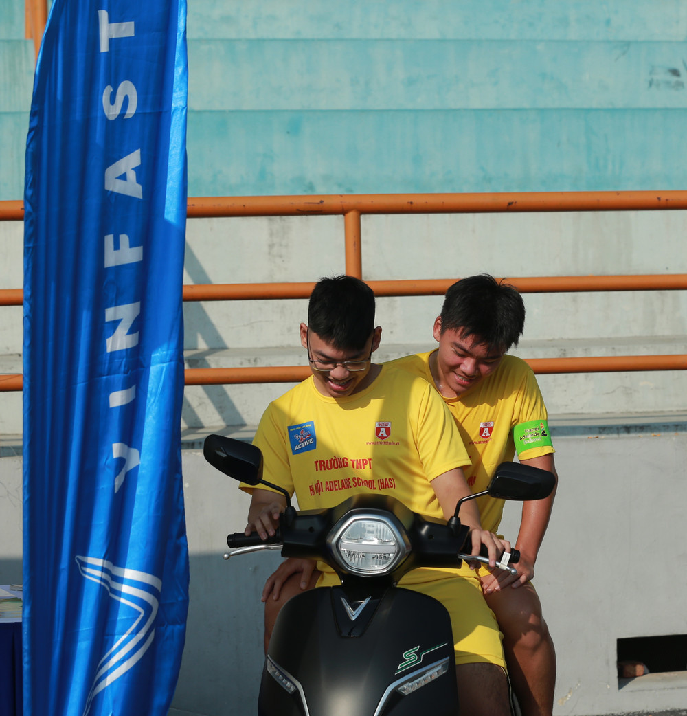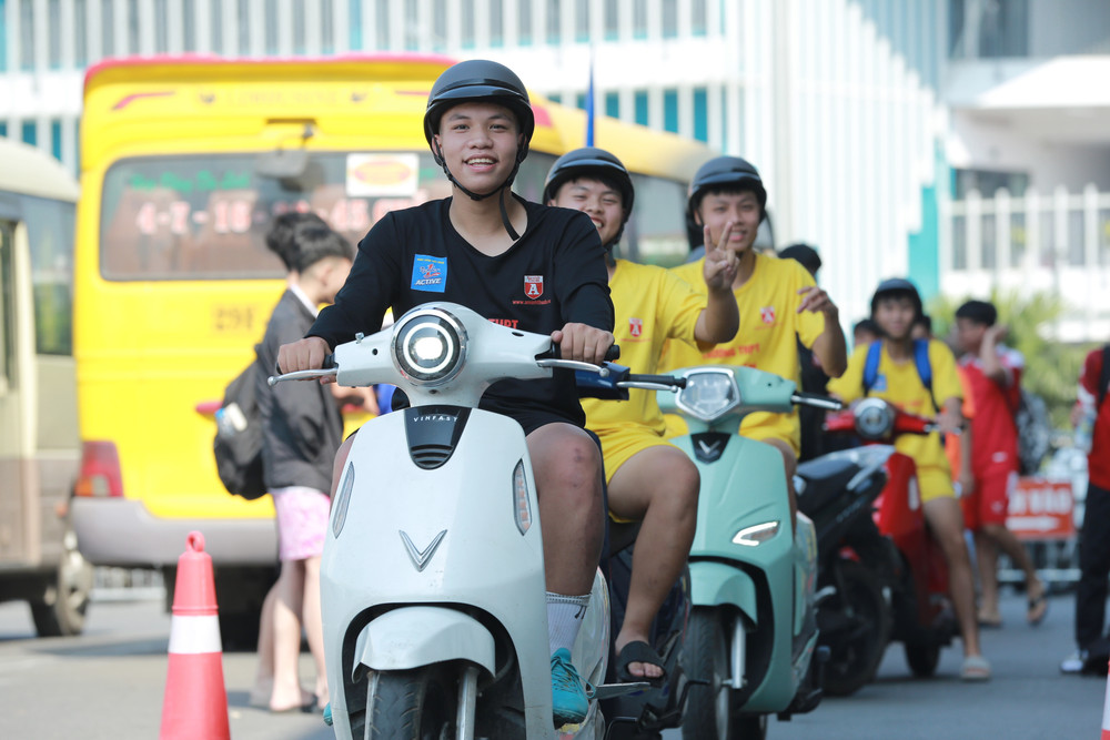 Cầu thủ bóng đá học sinh THPT Hà Nội thích thú trải nghiệm xe điện Vinfast
