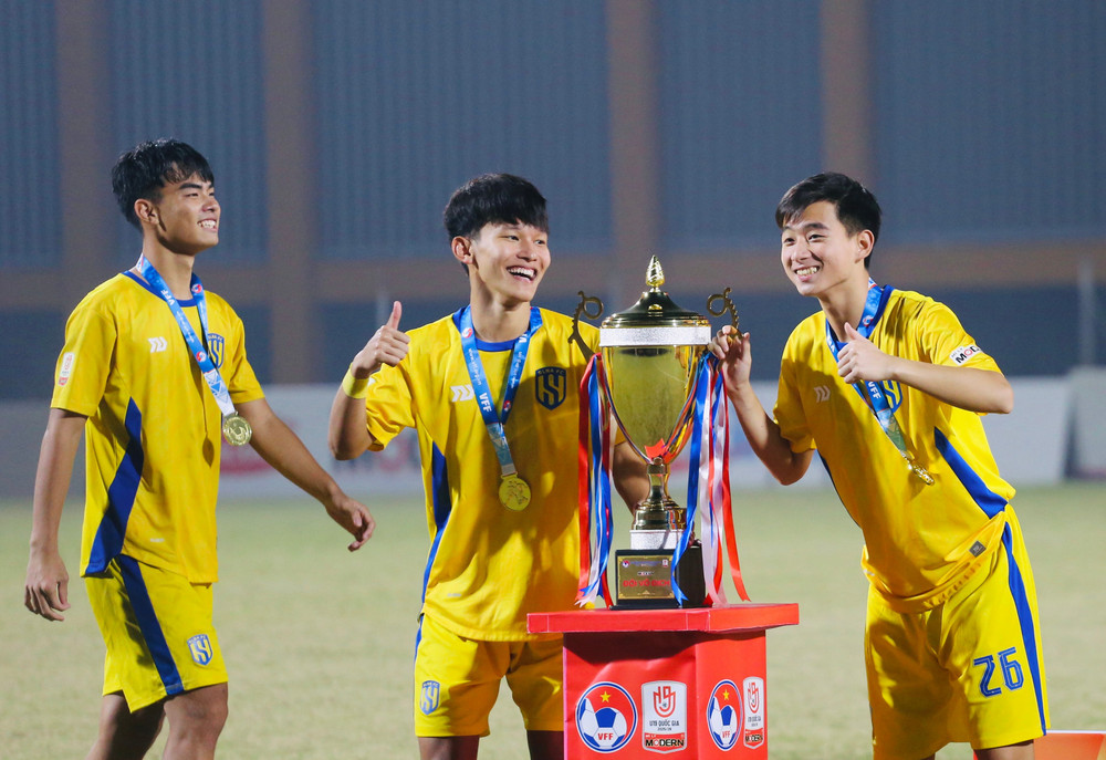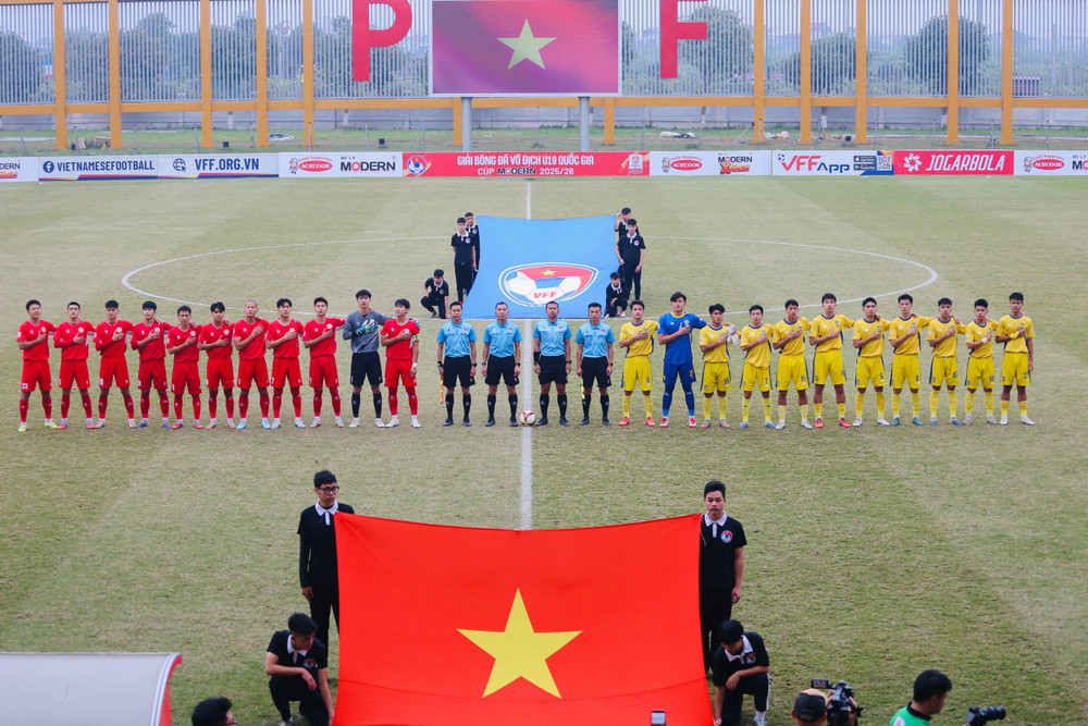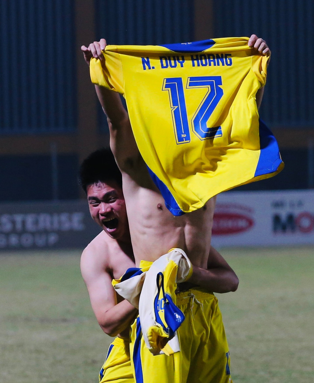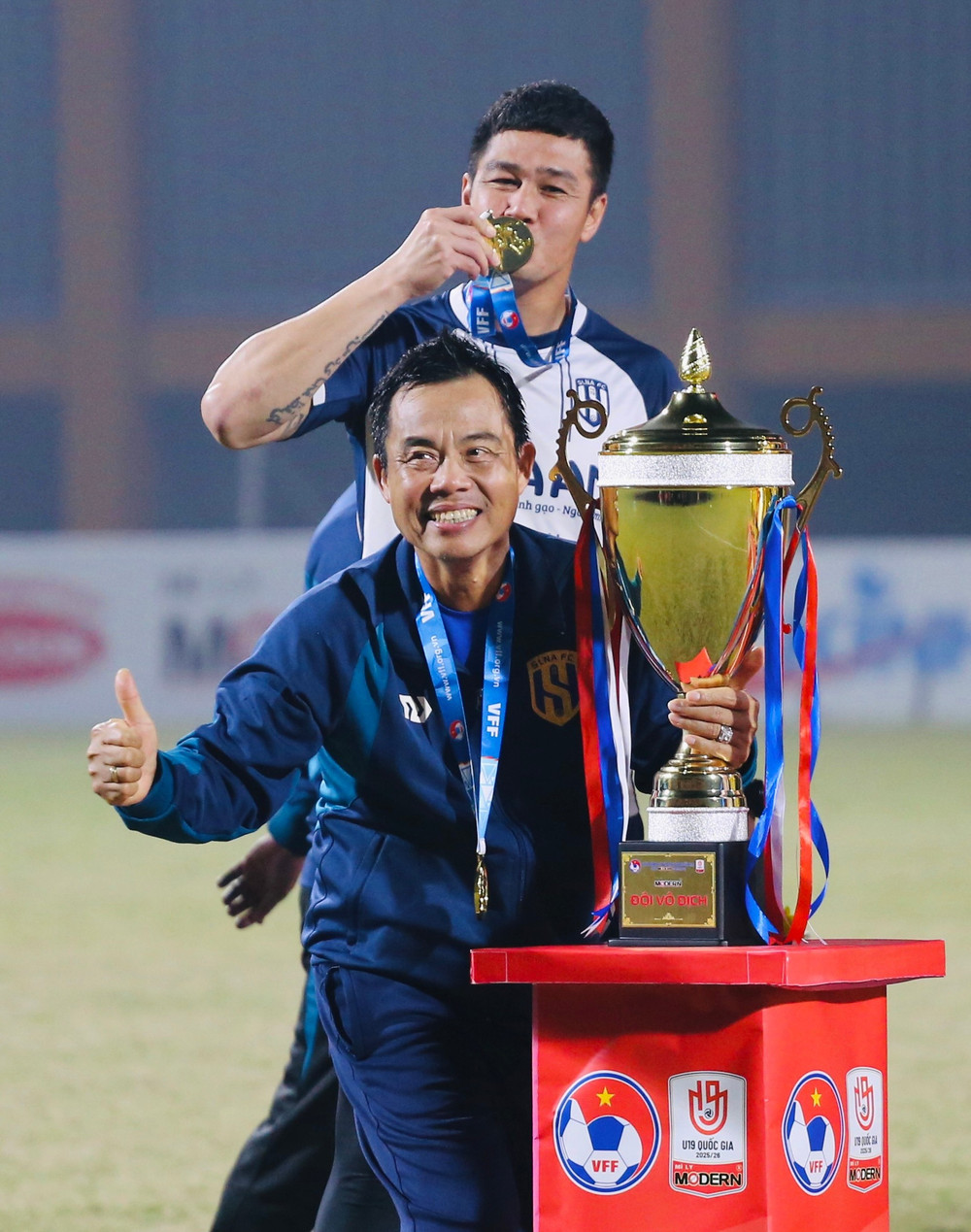 ANTD.VN - Sau chiến thắng luân lưu nghẹt thở trước chủ nhà PVF-CAND, cầu thủ SLNA công kênh huấn luyện viên, phấn khích ăn mừng chức vô địch U19 quốc gia 2025/26.