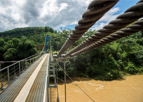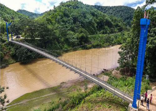 Chiếc cầu treo do Viettel tài trợ, giúp bà con đi lại dễ dàng là mơ ước hàng chục năm nay của người dân thôn Khe Gai. Ảnh: Nguyễn Bình.