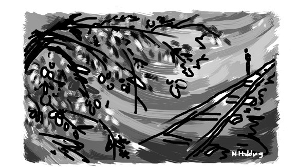 Một cây táo non! Nó nẩy mầm từ lúc nào mà đã mọc cao tới đầu gối ông rồi thế! Ngả một cành gai, cây táo như đứa trẻ bíu vào chân ông. Ông ngẩn người, thở phào: Cây có tình đây! Và như vậy là có thể hình dung ra đầu đuôi sự việc đại để diễn ra như sau: Một ngày nào đó có một chú bé ngồi trên một toa tầu ăn táo, sau khi ăn hết phần thịt táo, chú nhè ra một cái hạt và ném nó qua cửa sổ toa tầu. Hạt táo nọ rơi xuống kẽ đất đá giữa hai thanh tà vẹt. Rồi tự nhiên như bao sự sống, hạt táo nọ âm thầm nẩy mầm, lớn dần lên, cao dần lên trong côi cút một thân một mình.