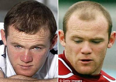Cầu thủ Wayne Rooney sau khi cấy tóc (ảnh trái)
