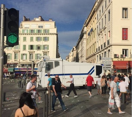 Trước lúc xảy ra vụ CĐV Anh bị một nhóm CĐV quá khích của Nga đánh thập tử nhất sinh, cảnh sát chống bạo động Pháp phải sử dụng chó nghiệp vụ, hơi cay và vòi rồng để giải tán các đám đông CĐV Anh và Nga ẩu đả trên đường phố.