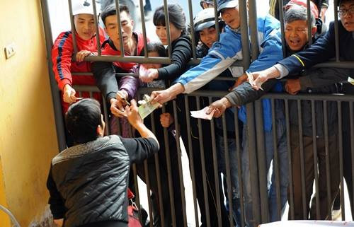 Bắt đầu từ 14h ngày 19/1, Ban tổ chức sân mở cửa bán vé. Hàng nghìn CĐV đã tràn vào mua tạo nên cảnh tượng khá hỗn loạn ở quầy vé. Nhiều người đã đứng chờ sẵn hàng giờ đồng hồ. Ở phía ngoài sân, đã xuất hiện các phe vé với mức giá “cắt cổ” từ 400.000 đồng – 500.000 đồng một cặp vé khán đài A.