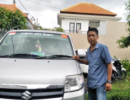Nyoman và chiếc xe đặc biệt với dòng chữ "Cảm ơn bạn"