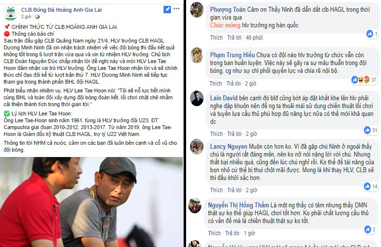 Ngay sau thông báo trên, trang facebook chính thức của CLB HAGL nhận về nhiều bình luận từ cổ động viên, cư dân mạng.